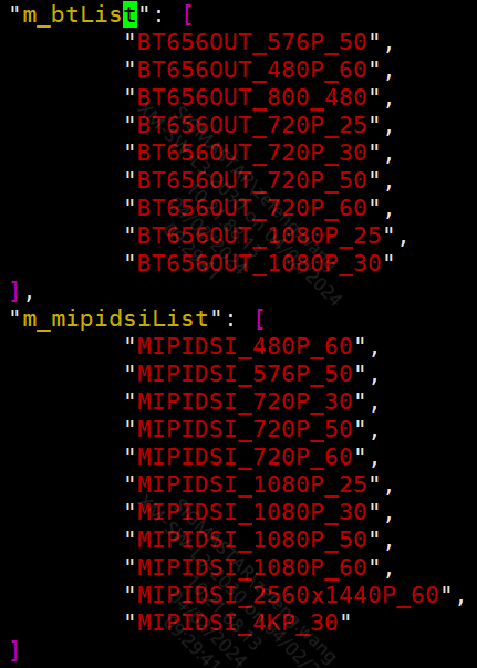 m_btList lists the screen parameter names of BT656 with multiple resolutions, and m_mipidsiList lists the screen parameter names of mipidsi with multiple resolutions.