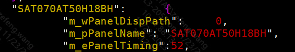 The section is unique and do not allow duplicate names, but variable names are allowed. As shown in the figure above, there can only be one section SAT070AT50H18BH, but m_pPanelName can be in different sections. The system distinguishes variable names according to different sections, and then adds different screen parameters.