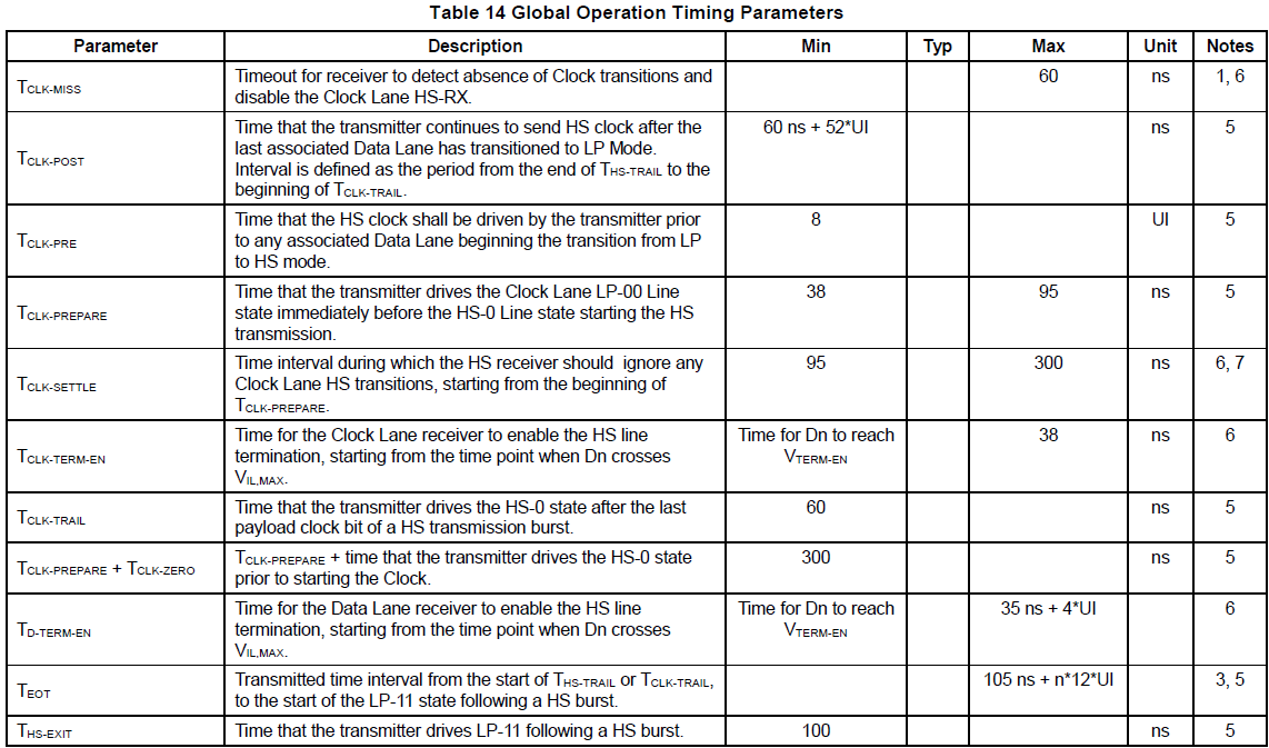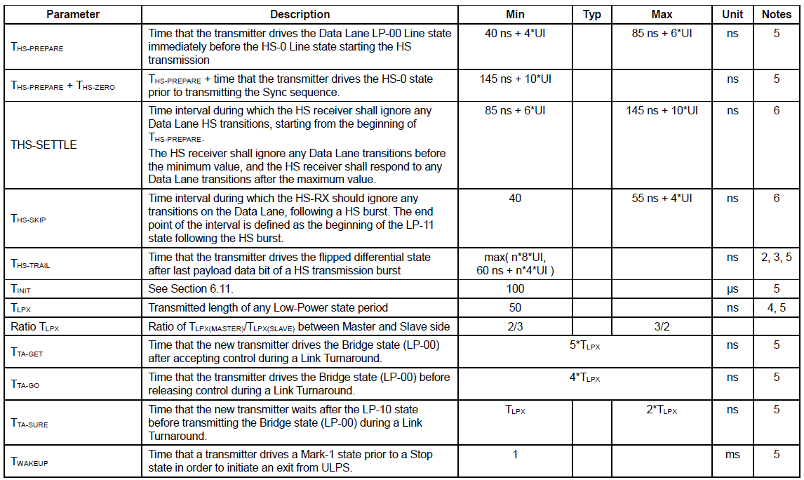 Note: The above dphy parameters are sourced from MIPI_D-PHY_specification.pdf