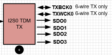 | I2S0_TX | 8 / 16 / 32 / 44.1 / 48 / 96 / 192 | 16 / 24 / 32 | 1 / 2 / 4 / 8 | standard,left justified |