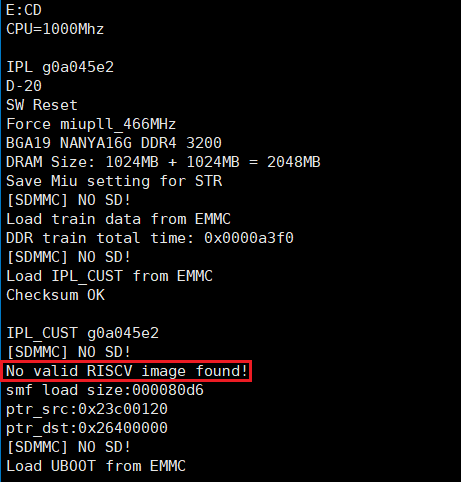 Example : The red boxed print indicates the RISC-V firmware wasn't loaded.