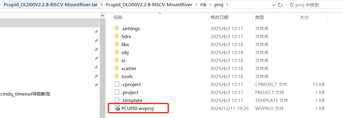 Double-click PCUPID.wvproj to open RISCV's MounRiver project