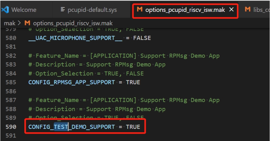 The compiled mak file for riscv will be set in the above defconfig CONFIG_RISCV_CONFIG="pcupid_riscv_isw"