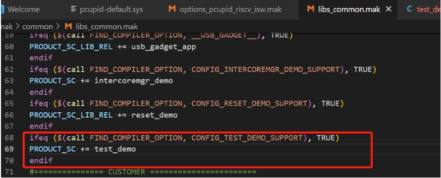 Add new applications PRODUCT_SC in riscv/kernel/RTK/proj/make/lib_common.mak file.