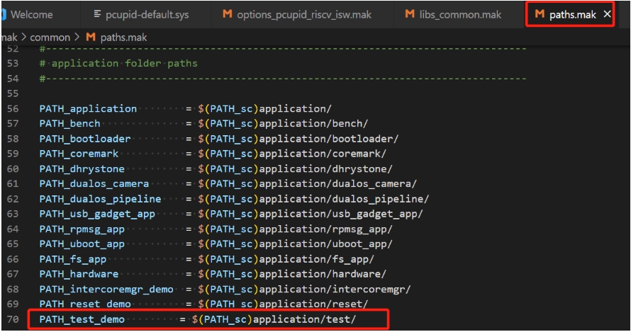 Add application path in riscv/kernel/rtk/proj/mak/paths.mak file.