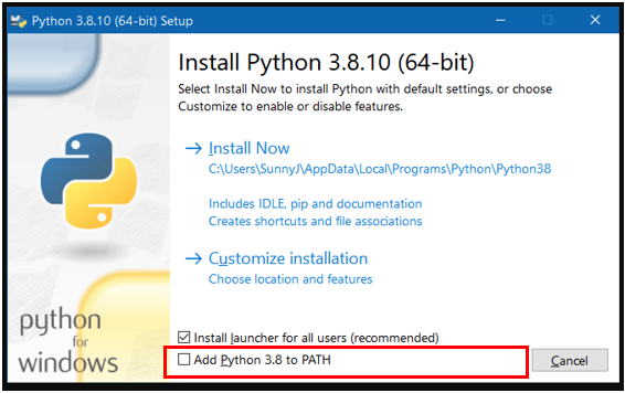 Double-click the downloaded installer to install. Remember to check the "Add Python to PATH" option.