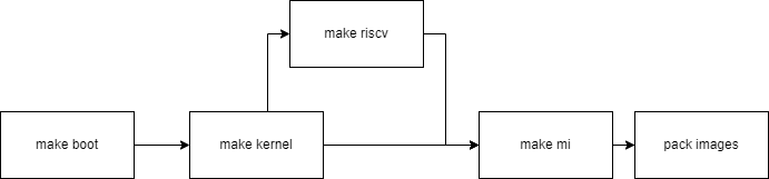 When make image is executed, the makefile will automatically compile the boot, kernel, riscv (optional), and sdk source codes, and copy the compiled output files to project/image. Finally, it will create the partition table, file system, etc., and package them to the project/image/output/images directory.