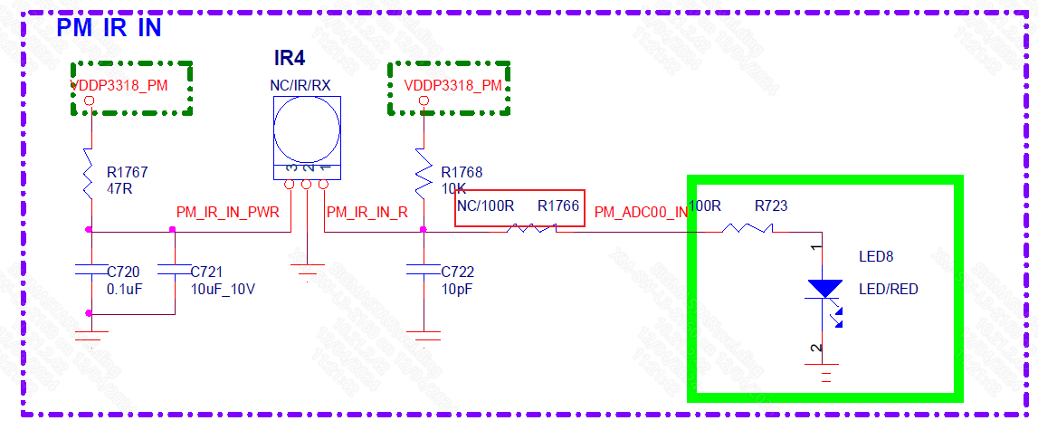 Check the schematic for the corresponding PIN to see if there are any soldering issues with the resistors. If there is a soldering issue, the resistor needs to be re-soldered; otherwise, the PIN will not be connected. For example, a 100R resistor needs to be connected at R1766; otherwise, IR signals cannot be received.
