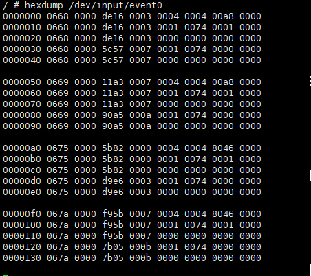 Input the command hexdump /dev/input/event0.