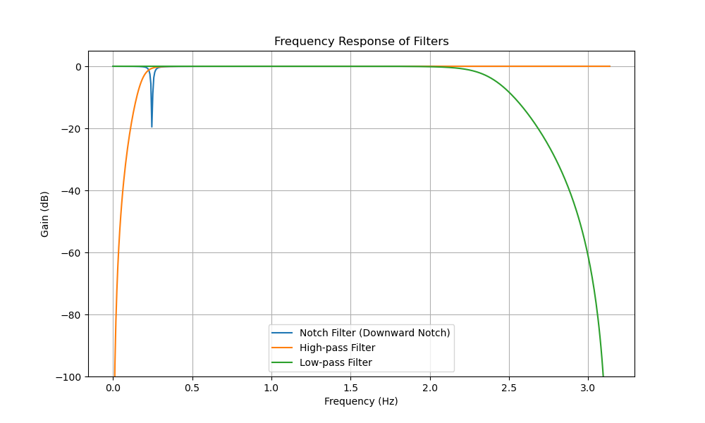 There are three types: notch filter/high-pass filter/low-pass filter. Please refer to the following figure for the typical frequency response of the three filters.