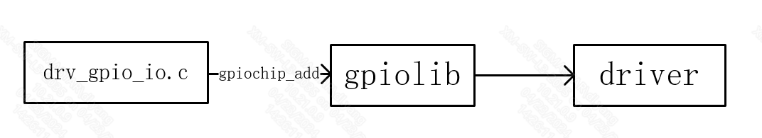 As illustrated in the GPIO framework above, the layer in the middle is gpiolib, for managing the GPIOs in the system. The gpiolib is a collection of the general GPIO operations. Depending on the characteristics of the GPIO, the gpiolib interfaces to a corresponding uniform software interface provided by other drivers for operating the GPIO. On the downward side, the gpiolib provides a set of frameworks to operate different chips. For different chips, you need only to implement drv_gpio_io.c and then use the registration function provided by gpiolib to mount it to the gpiolib.