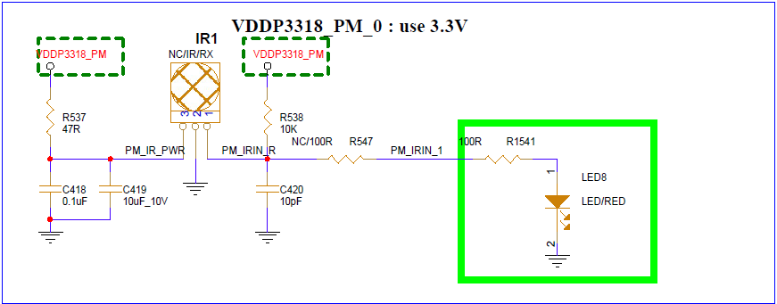 Check whether there is a short circuit in IR Receiver in the hardware schematic (such as JP55 in Figure 5-9).