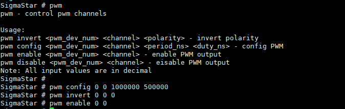 echo PAD_PWM0 PINMUX_FOR_PWM0_MODE_1 > /sys/class/sstar/msys/mux_verify cat /sys/class/sstar/msys/mux_verify