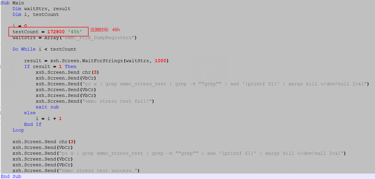 Users can modify the test time in the script as needed. If the stress test script runs in the background, rename the stress test script to emmc_stress_test.sh before running it. The vbs monitoring script will stop the stress test script running at the end.