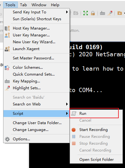Run this script before starting the stress test, open the tool options of xshell, and select the script file to run: