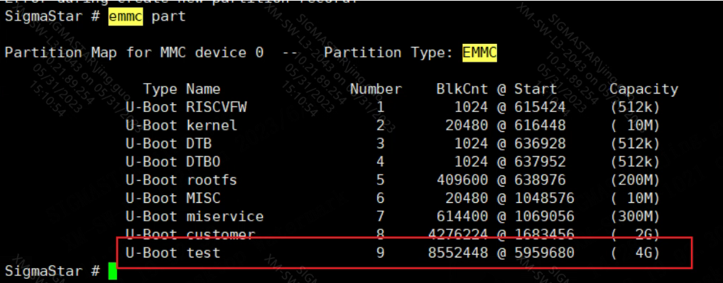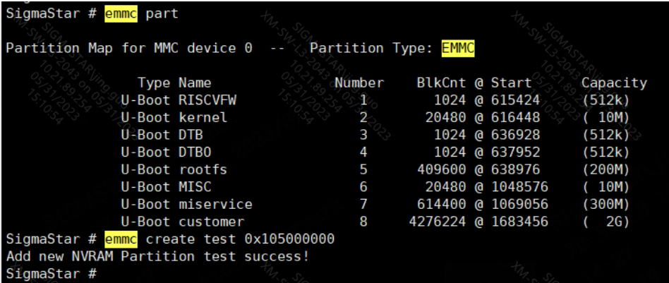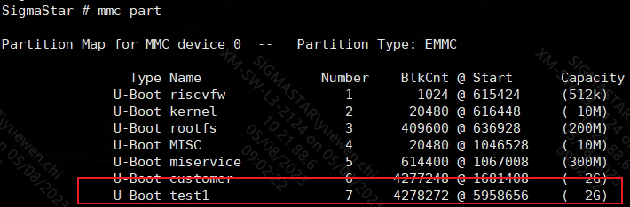 Testers can use the emmc create command to create a test partition in uboot, for example: