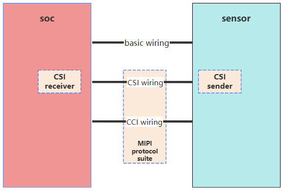 The sensor itself needs to be connected to basic pins, such as the reset pin and clk (clock) input pin. These pins/wirings do not belong to the MIPI protocol suite.