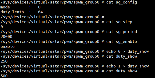 echo PAD_PWM0 PINMUX_FOR_PWM0_MODE_1 > /sys/class/sstar/msys/mux_verify cat /sys/class/sstar/msys/mux_verify