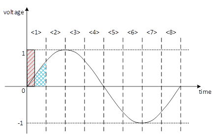 Divide the sine wave into eight equal segments and label each segment with a number <1> to <8>;