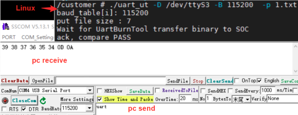 /customer # echo 987654 > 1.txt /customer # ./uart_ut -D /dev/ttyS1 -B 115200 -p 1.txt