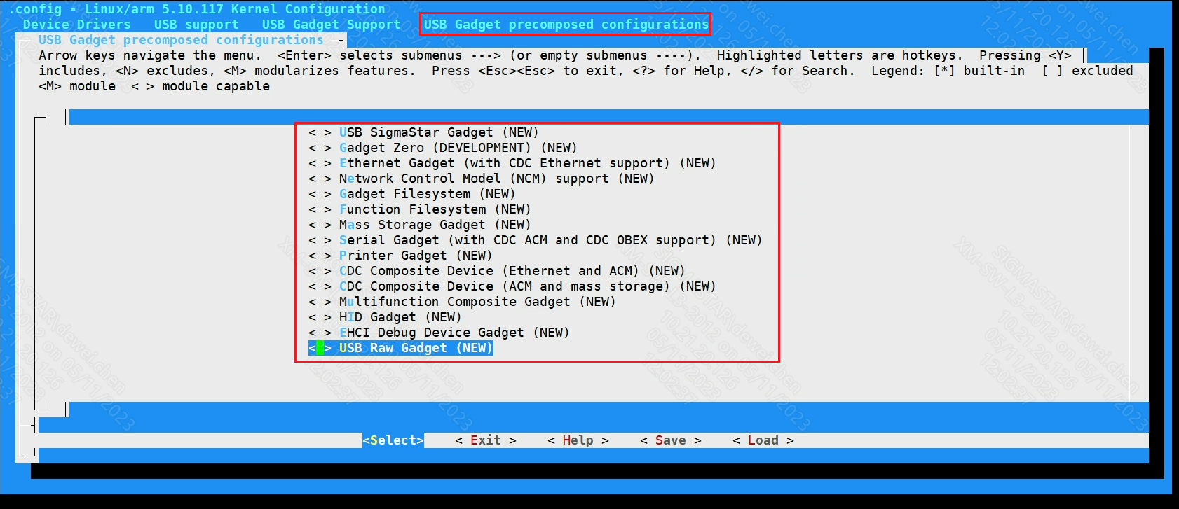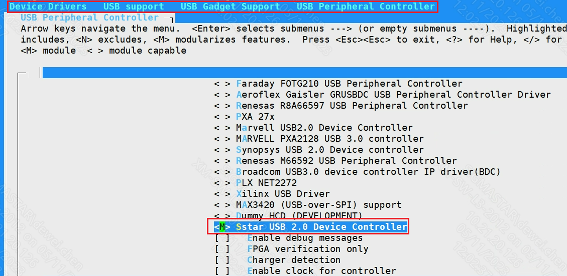 Enable the Gadget core layer and UDC configuration. (Generate usb-common.ko, udc-core.ko, udc-msb250x.ko)