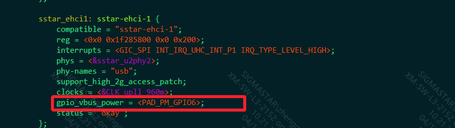 At present, uboot and kernel already contain the relevant logic of Vbus to pull gpio. It is necessary to add vbus control information in dts. The following figure adds the vbus GPIO information of P1.