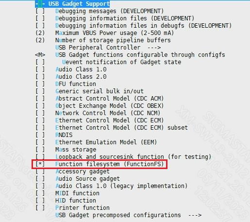 The device configuration method mainly involves enabling UDC configuration (udc-msx250x.ko) and some gadget configurations. (depending on which function is needed)