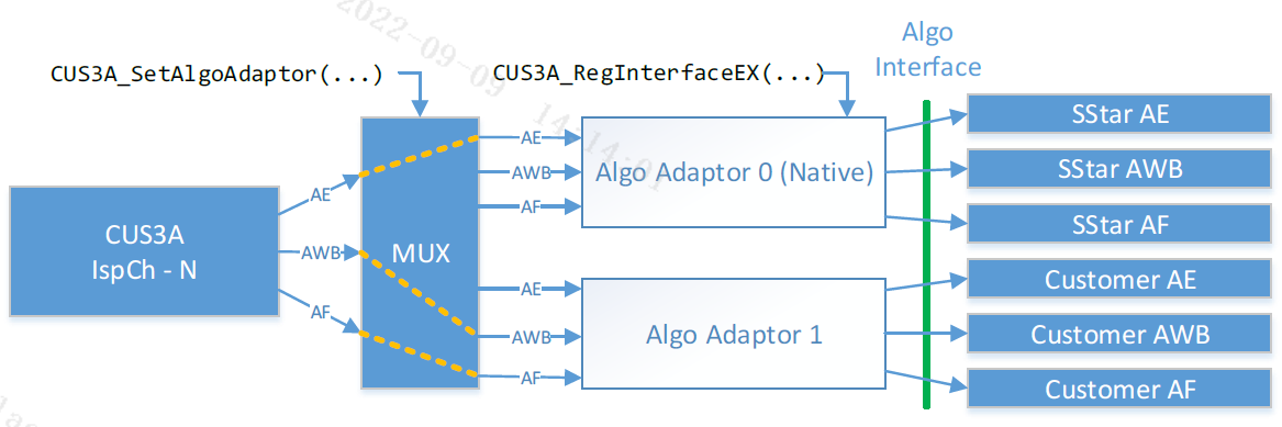 Apart from those provided in the main ISP core, additional 3A algorithm modules can be plugged to the ISP block according to the system structure. Users are allowed to develop their own AWB/AE/AF algorithm libraries and connect them to the ISP by registering the AWB/AE/AF Interfaces.