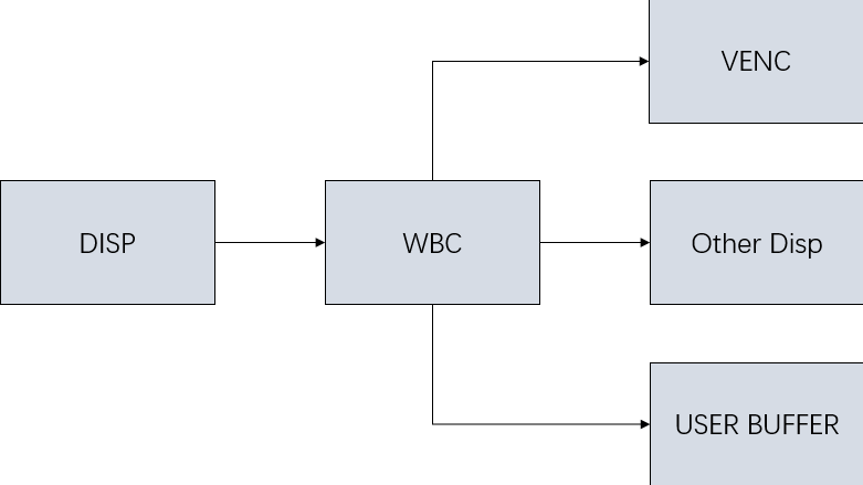 The WBC input buffer is transferred by disp0/disp1 and then written back to VENC/USER BUFFER/Other Disp.