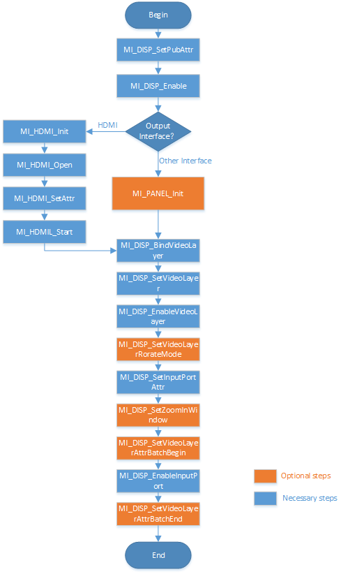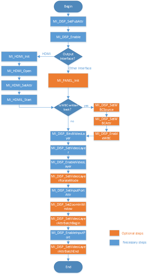 In the RTOS environment, applications can be developed based on the API interfaces provided by MI_DISP/MI_HDMI/MI_WBC.