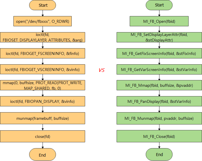In Dualos, applications running on Linux can be developed based on the standard Framebuff framework or MI_FB API; applications running on RTOS can only be developed based on MI_FB API.