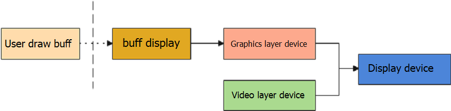 The video preview overlay path means that the graphics layer can be overlaid on the video display unit which is managed by MI_DISP submodule. If the graphics layer is overlaid on the video display unit, you need to configure MI_DISP submodule first, and then operate MI_FB submodule to draw the graphics layer, finally, the video display unit outputs the overlaid video data to the display device, and the video display unit determines the final display resolution.