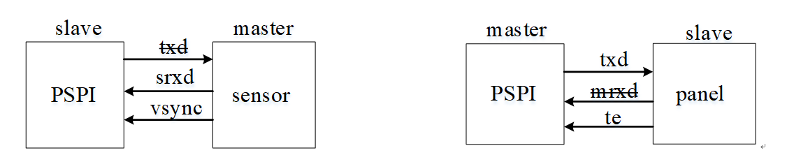 When PSPI is used as a Master, it can communicate with the Panel. Te is the indication signal from the Panel to PSPI, indicating that the Panel has started to refresh all internal buffers to the display, and its valid signal is high level.