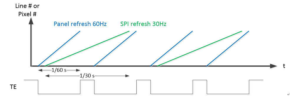 Generally, Pannel can dynamically start and stop the synchronization signal by operating the TE Line On/Off command. PSPI can receive TE signals for signal synchronization to prevent screen tearing.