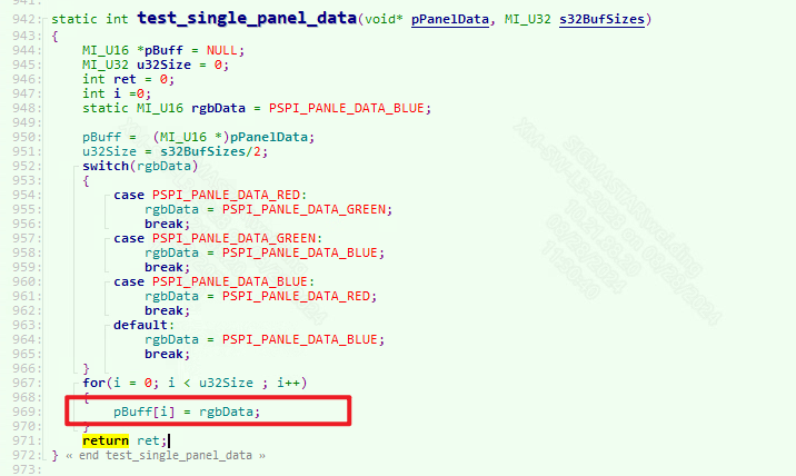 When the hardware is connected to the Pannel, the initialization of the Pannel is implemented by the application layer calling the function MI_PSPI_Transfer() to pass in the screen parameters, and then the application layer continuously passes the image data to the PSPI Master;