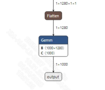 分类模型没有后处理, 获取到模型输出后通过softmax和argmax处理就可以得到最终分类结果。转换成功的mobilenetv2_sim.onnx模型输出信息如下图所示