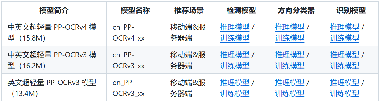 PP-OCR社区持续在更新中, 我们采用的是PP-OCRv4版本, 详情可参考PP-OCR官方说明: