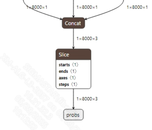 - 后处理 该语音分离模型没有后处理操作, 获取到模型输出数据后, 可直接根据输出的通道数量分别保存不同说话人的音频。模型输出信息如下所示: