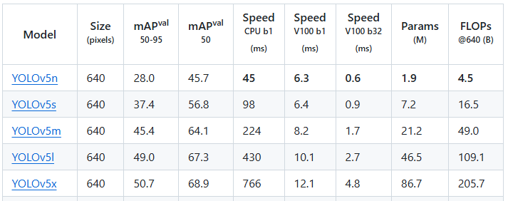 yolov5是一种先进的实时目标检测算法, 它在保持快速检测速度的同时, 进一步提高了检测的准确性和鲁棒性。yolov5官方有提供多种不同大小的检测模型:n、s、m、l、x, 这些开源模型的精度如下: