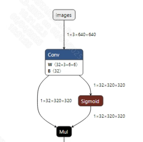 转换成功的yolov5s.onnx模型输入信息如下图所示, 要求输入图像的尺寸为 (1, 3, 640, 640), 此外需要将像素值归一化到 [0, 1] 范围内。