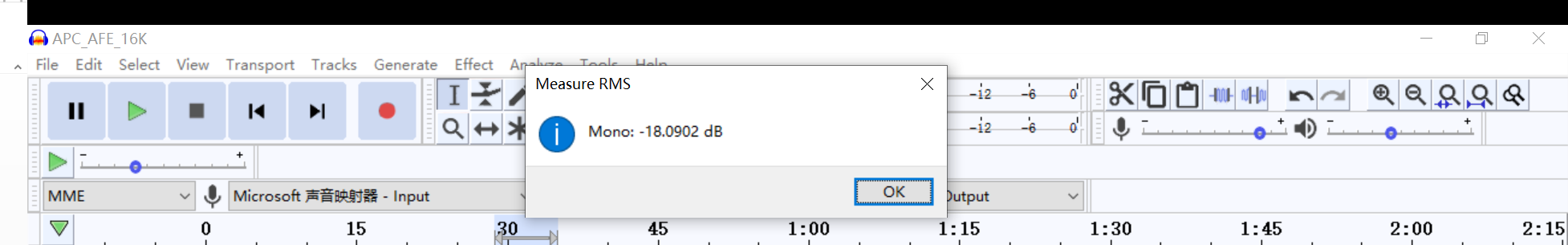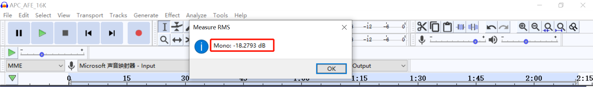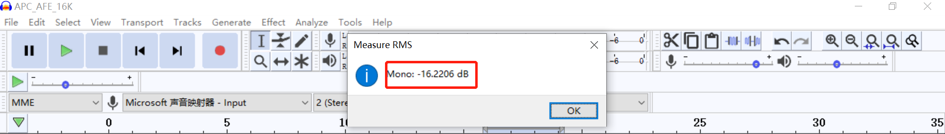 It`s often necessary to check the signal over a period time in the intercom debugging. The method to check the signal value through Audacity is as the figure shown below.