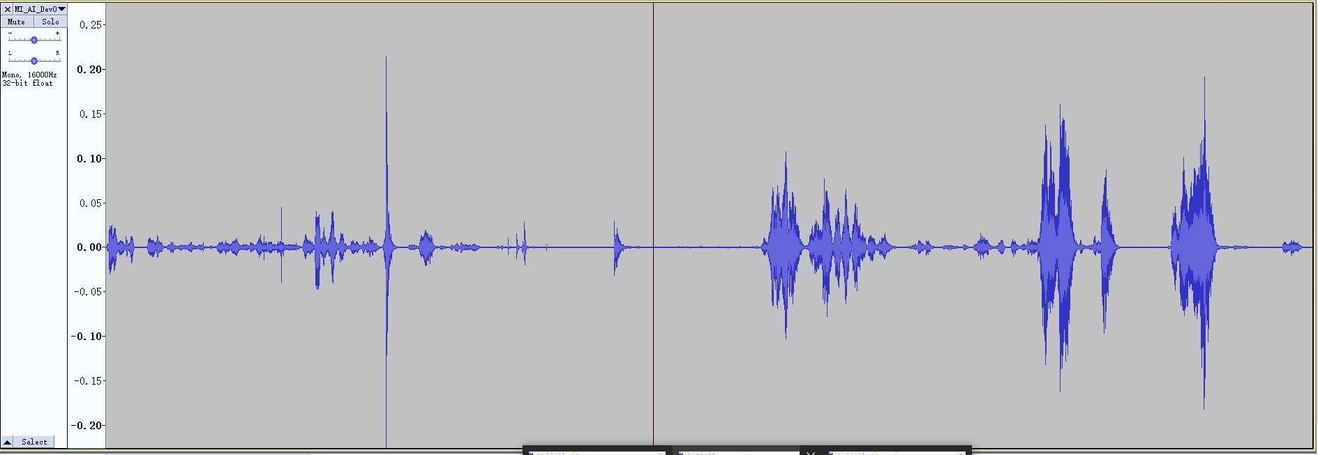 As shown below, the audio files are AecAoIn and AecOut. The audio file output by the AEC algorithm still has some echo remaining, which is caused by the low AEC intensity setting.