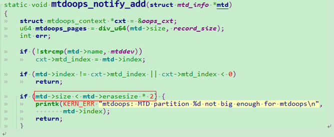 Using the Linux native CONFIG_MTD_OOPS mechanism, register the corresponding flash mtdoops_do_dump function through kmsg_dump_register, call mtdoops_do_dump when OOPS or panic occurs in the kernel, and write kmsg information to the corresponding mtd partition to save the kernel exception log before restart.