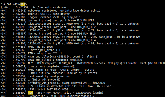 catto view the kmsg content on the node later)Note: The size of the newly created partition is greater than or equal to the erasesize*2 of the corresponding flash to avoid errors reported by insmod mtdoopss: