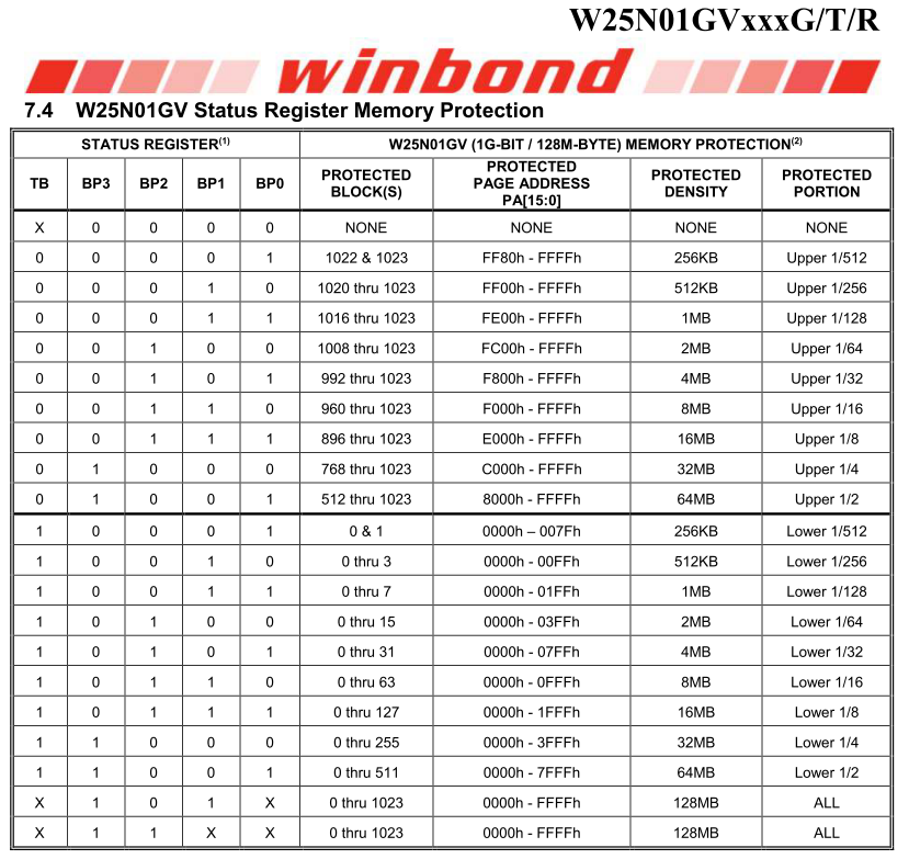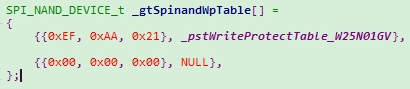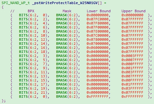 _pstWriteProtectTable_W25N01GV stores the information of W25N01GVFlash Write Protect: