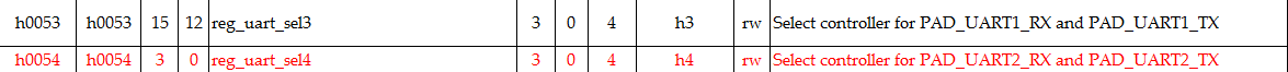 | UART1 | PAD_UART1_RX | PAD_UART1_TX | NA | NA |