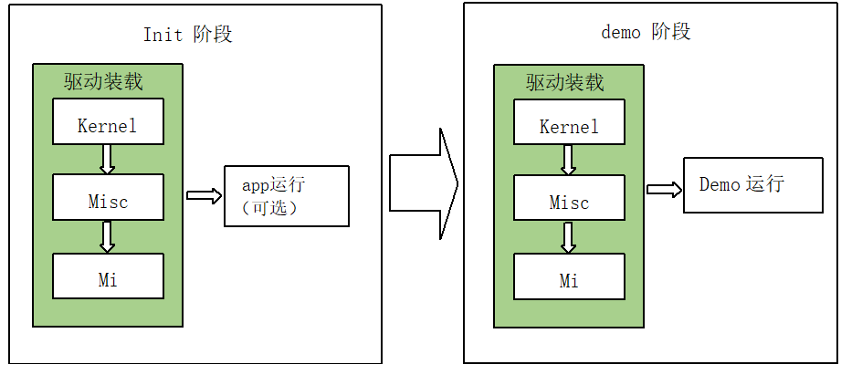 后启动流程这个阶段包括分区的挂载与modules的装载,大致分为两个阶段:init 阶段 与 demo 阶段: