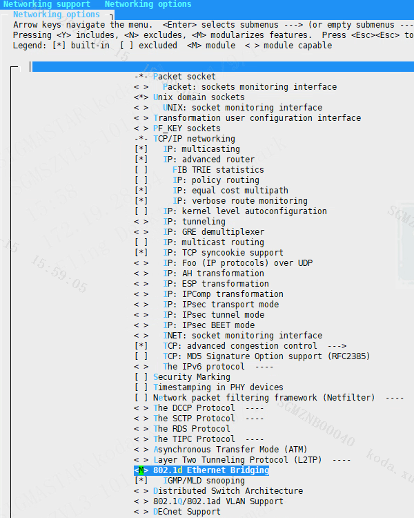 Kernel配置添加网络桥接支持,编译kernel在kernel/modules目录会生成llc.ko,stp.ko,bridge.ko。网络桥接前依次加载这三个驱动。注:Kernel网络相关配置变化,wifi驱动可能需要重新编译。
