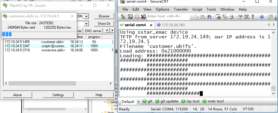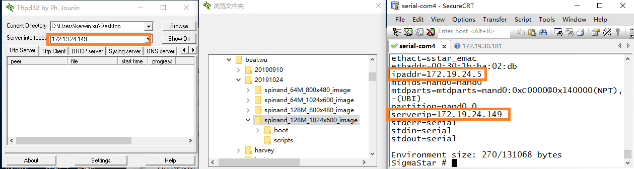 step2:使用TFTP软件指定Image的烧录路径,确保服务器IP地址配置正确,如下图所示,板子Serverip是
