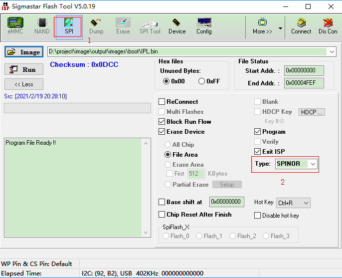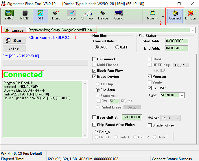 Step 5: 加载 image “IPL_CUST.bin”,设置